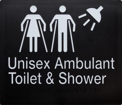 Unisex Ambulant & Shower Toilet White On Black 3 Icons (Braille – MFATS-BLACK)